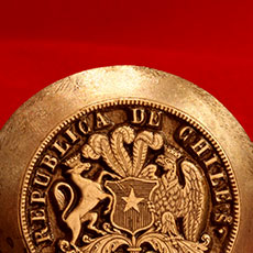 Fue una moneda de oro, con la imagen del Rey Fernando VI de España, la primera pieza que se acuñó en los talleres de Casa de Moneda de Chile, fundada en 1743. Con casi tres siglos de historia, es la empresa más antigua de Chile en el rubro de la acuñación de monedas y la impresión de billetes que aún se encuentra en funcionamiento. Casa de Moneda de Chile S.A., se constituyó como Sociedad